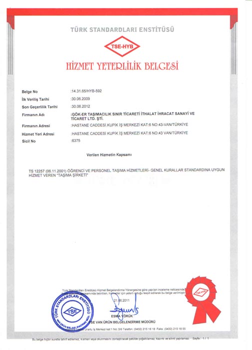 Vermiş olduğumuz hizmet "güven ve kalite" mizi göstermektedir.